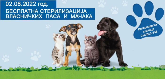 Обавештавамо све власнике паса и мачака да ће се 02.08.2022. године у просторијама Ветеринарске станице у Лебану извршити бесплатна стерилизација власничких паса и мачака и то за само одређени број животиња :