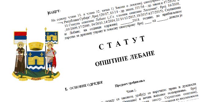 Скупштина општине Лебане донела Одлуку о приступању израде Статута општине Лебане и именовању комисије за израду Статута 02 број 02-371 од 05.11.2018. год.
