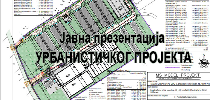Оглашава се Јавна презентација УРБАНИСТИЧКОГ ПРОЈЕКТА НА К.П.БР. 2343/1 КО ПЕРТАТЕ, инвеститора „МАК ИНТЕРНАЦИОНАЛ“ доо из Ниша, израђен од стране пројектног бироа „Арби Тас“ из Ниша.