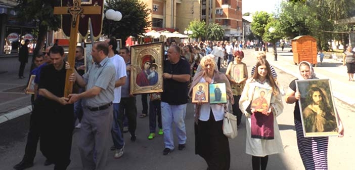 09:15 – износење литијског крста у свечаној поворци до Дома здравља и назад,