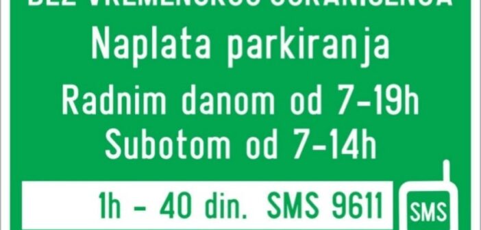 Наплата паркирања ће се вршити радним данима од 7 – 19 часова, суботом
