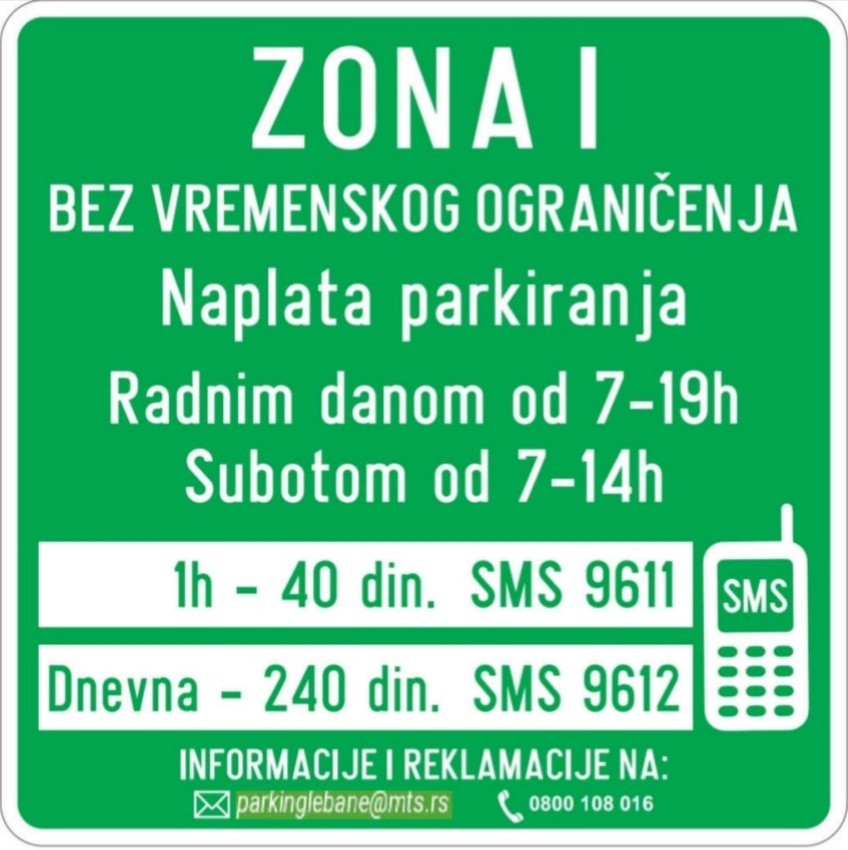 Од понедељка, 03. новембра 2025.године, у Лебану, почеће са радом савремени систем наплате и контроле паркирања путем СМС порука и издавања претплатних и паркинг карата.