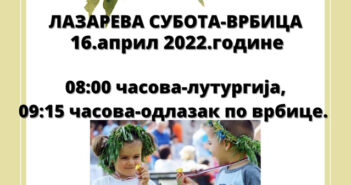 Вести 14. април 2022. Обележавање Врбице у суботу У суботу 16. априла обележава се Лазарева субота или Врбица. Од 8 часова у храму…