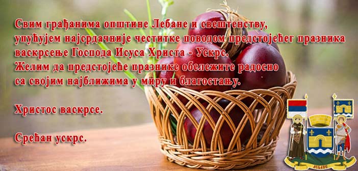 „Свим грађанима општине Лебане и свештенству, упућујем најсрдачније честитке поводом предстојећег празника васкрсење Господа Исуса Христа – Ускрс.