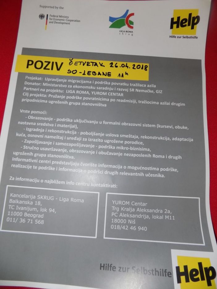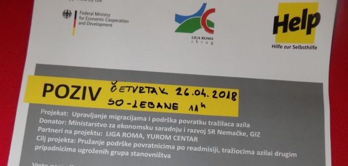 Лига Рома и YУРОМ Центар заједно са Хелп-ом, уз донацију ГИЗ-а и Немачке владе почели су са реализацијом пројекта „Управљање миграцијама и подршка повратку тражилаца азила“ у трајању од марта 2018 – јун 2020.