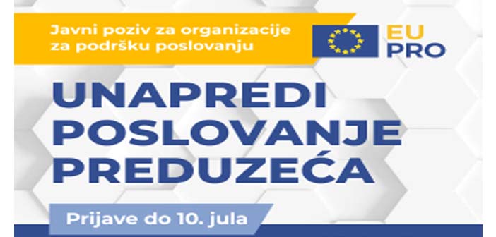 Са задовољством вас обавештавамо да је ЕУ ПРО објавио ЈАВНИ ПОЗИВ ЗА ОРГАНИЗАЦИЈЕ ЗА ПОДРШКУ ПОСЛОВАЊУ.