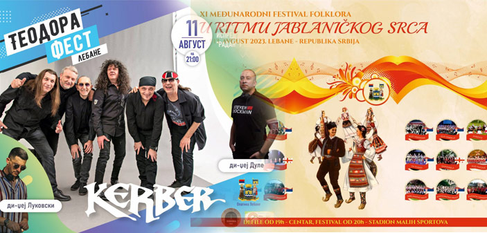 Под покровитељством Општине Лебане, а у организацији Туристичке организације општине Лебане и Дома културе „Радан“ биће одржана 2 традиционална лебанска фестивала XI по реду: Теодора фест и Међународни фестивал фолклора „У ритму јабланичког срца“