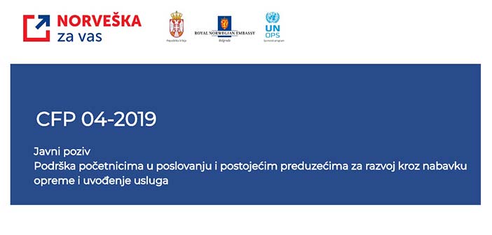 У оквиру пројекта „Норвешка за вас“ објављен јавни позив „Подршка почетницима у пословању и постојећим предузећима за развој кроз набавку опреме и увођење услуга“.