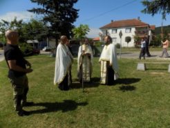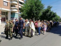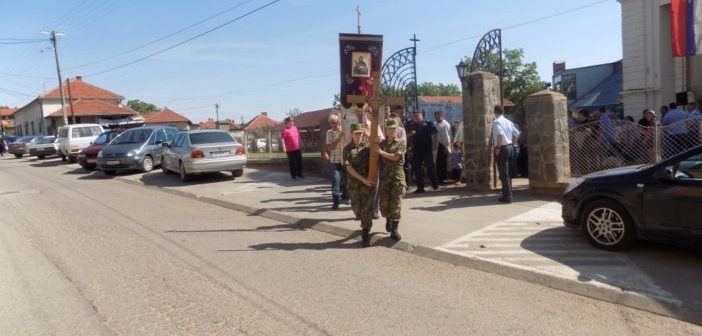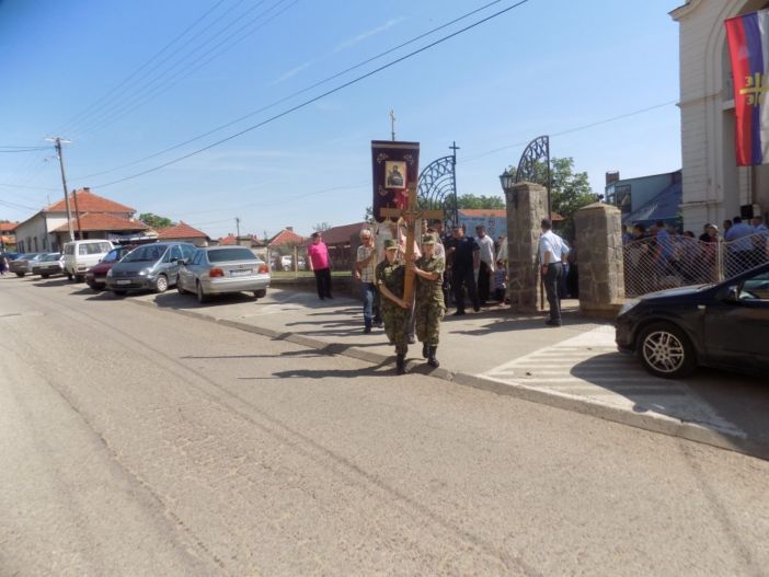 На челу колоне били су припадници Војске Србије и МУП-а са крстом, иконама и барјацима, потом архијерејски намесник Јабаланички Далибор Стефановић и свештеници цркве у Лебану пароси Живојин, Филип и Александар, а иза њих деца са иконама и верници у дугачкој колони.