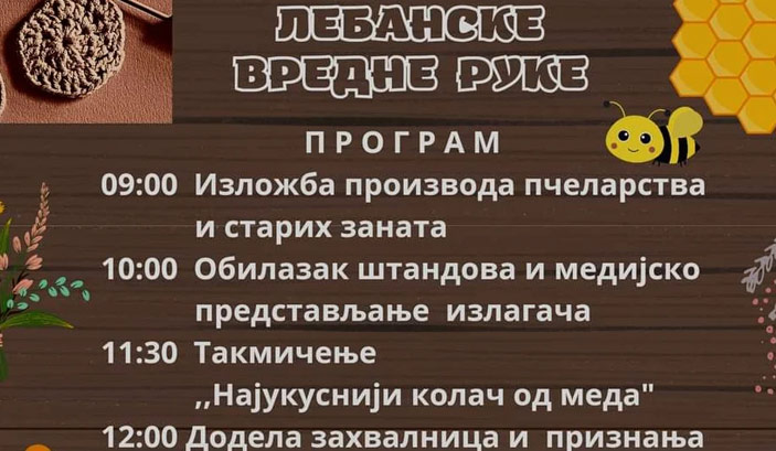 Други сајам пчеларства и старих заната „Лебанске вредне руке“ у органиацији Туристичке организације општине Лебане, а под покровитељством општине Лебане биће одржан сутра 24. новембра од 10 часова на платоу испред Дома културе.