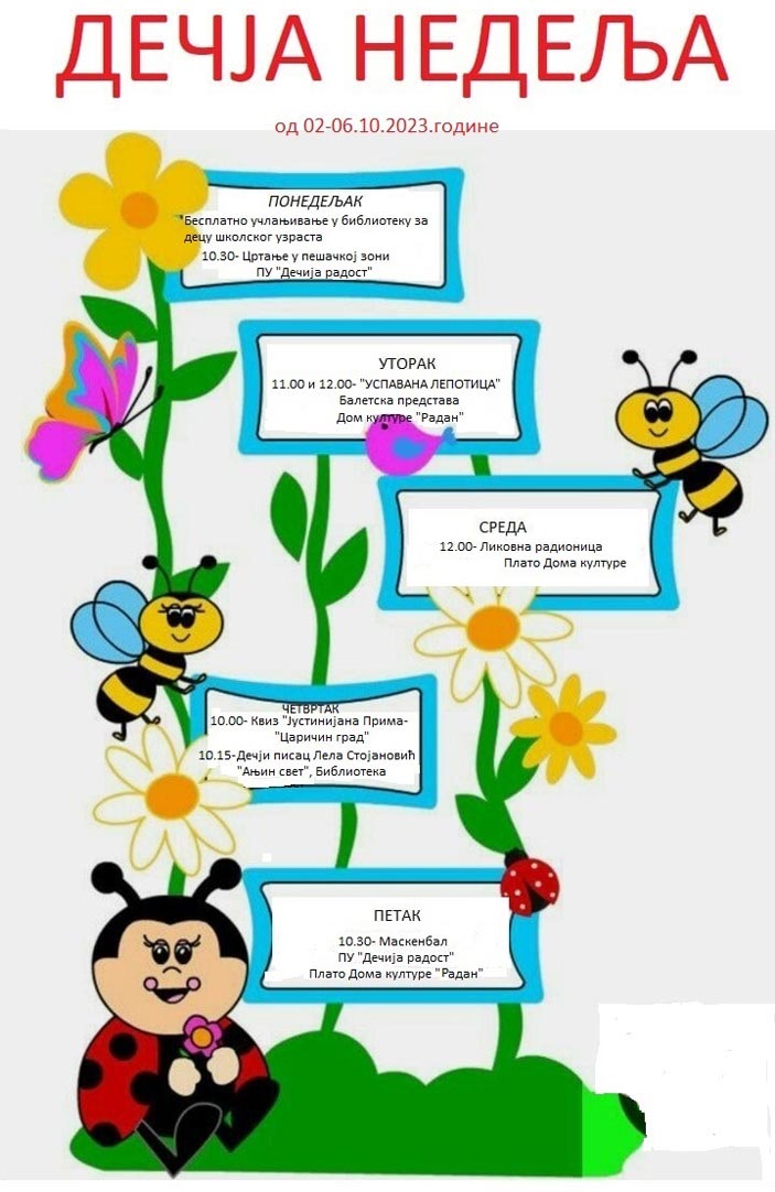 Под покровитељством општине Лебане а у организацији Дома културе „Радан“ од данас 2. октобра до 8. октобра биће организована Дечија недеља.