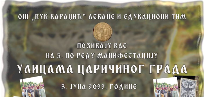 Под покровитељством Општине Лебане, а у организацији ОШ Вук Караџић, удружења грађана „Едукациони тим“, Туристичке организације општине Лебане и Народног музеја Лесковац, у петак 3. јуна одржаће се манифестација „Улицама Царичиног Града“.